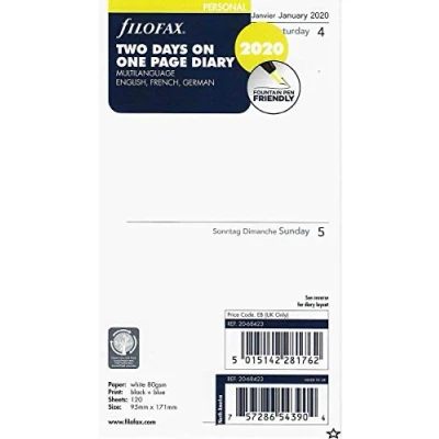Filofax Personal Two Days per Page 3 Language 2020 Diary