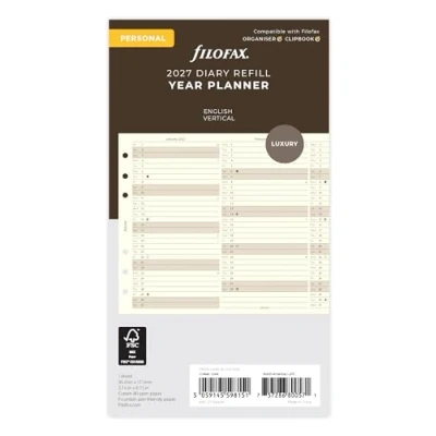 Amazon MarketplaceFilofax Personal 2027 Year planner refill 80gsm fountain pen friendly paper Compatible with Filofax Personal size organisers / Clipbooks Cotton Cream paper Paper size 95mm x 171mm