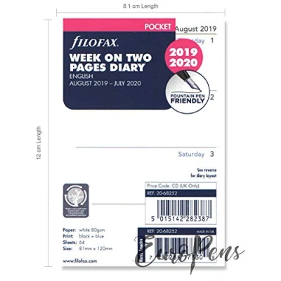 Filofax Pocket Week on Two Pages English mid Year Diary August 20 July 21