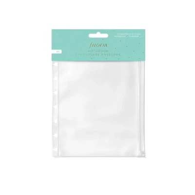Filofax A5 notebook envelope Clear transparent envelope Horizontal zip fastening Fits A5 Filofax A5 refillable notebooks Not compatible with Filofax organisers