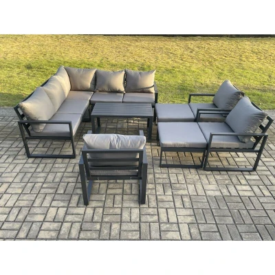 Fimous 10 Seater Aluminium Outdoor Garden Furniture Set Patio Lounge Sofa with Oblong Coffee Table Chair 2 Big Footstools Dark Grey