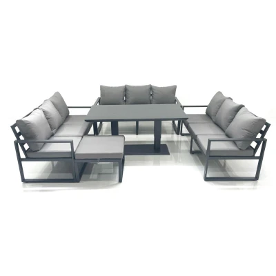 Fimous 10 Seater Garden Sofa Set Aluminium Furniture Rising Dining Tabe with Big Footstool Dark Grey