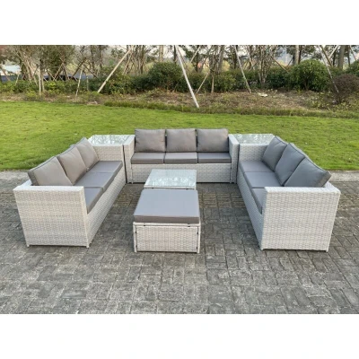 Fimous 10 Seater Wicker Light Grey Lounge Rattan Sofa Set Outdoor Garden Furniture Conservatory Patio