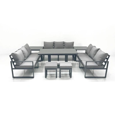 Fimous 11 Seater Garden Sofa Set Aluminium Furniture Rising Dining Tabe with 2 Side Tables Small Footstools Dark Grey