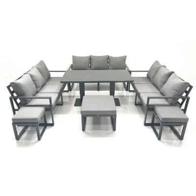 Fimous 12 Seater Garden Sofa Set Aluminium Furniture Rising Dining Tabe wth 3 Footstools Dark Grey