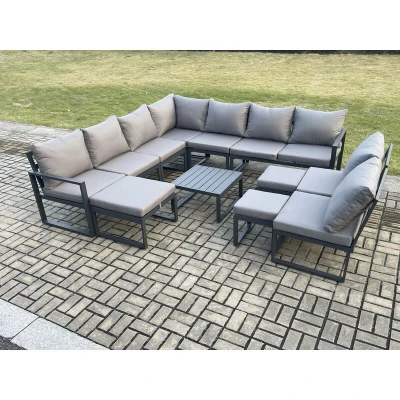 Fimous 12 Seater Patio Outdoor Garden Furniture Aluminium Lounge Corner Sofa Set with Square Coffee Table 3 Footstools Dark Grey