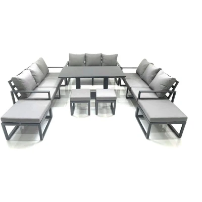 Fimous 13 Seater Garden Sofa Set Aluminium Furniture Rising Dining Tabe with 4 Footstools Dark Grey