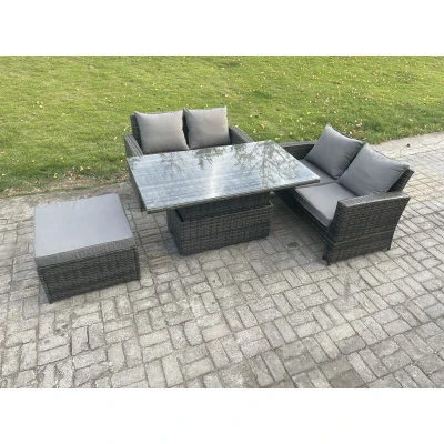 Fimous 4 Pieces Garden Furniture Sets Poly Rattan Outdoor Patio Height Adjustable Rising Lifting Table Sofa Dining Set with Big Footstool