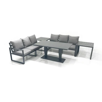 Fimous 6 Seater Aluminium Outdoor Garden Furniture Set with Adjustable Rising Lifting Dining Table 3 Sofa 2 Side Tables Dark Grey