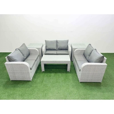 Fimous 6 Seater PE Wicker Rattan Furniture Sofa Sets with Oblong Coffee Table 2 Love Side Light Grey