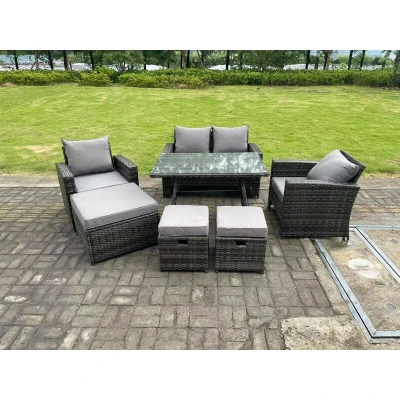 Fimous 7 Seater Dark Grey Mixed High Back Rattan Sofa Set Dining Table Garden Furniture Outdoor