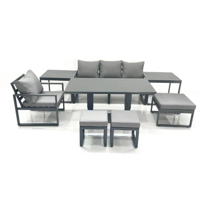 Fimous 7 Seater Garden Sofa Set Aluminium Furniture Rising Dining Tabe with Chair 3 Footstool 2 Side Tables Dark Grey