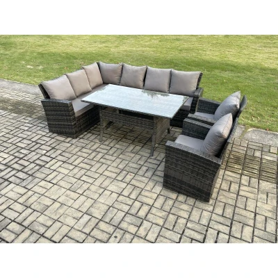 Fimous 8 Seater Garden Rattan Furniture Corner Dining Set with Armchair Indoor Outdoor Lounge Sofa Dark Grey Mixed