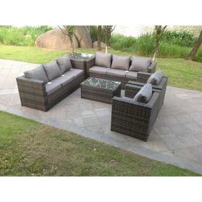 Fimous 8 Seater Outdoor Rattn Garden Furniture Sofa Set Rectangular Coffee Table Lounge Chair With Side