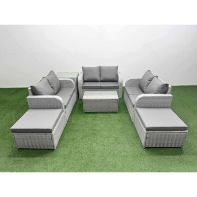 Fimous 8 Seater PE Wicker Rattan Furniture Sofa Sets with Rectangular Coffee Table 2 Love Big Footstool Side Light Grey
