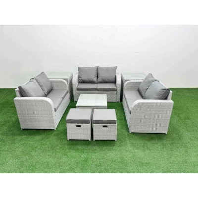 Fimous 8 Seater PE Wicker Rattan Furniture Sofa Sets with Square Coffee Table 2 Love Stool Side Light Grey