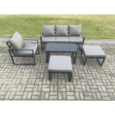 Fimous Aluminium 5 Pieces Garden Furniture Sofa Set with Cushions 6 Seater Outdoor Patio Armchair 2 Big Footstools Dark Grey