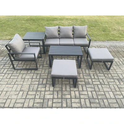 Fimous Aluminium 6 Pieces Garden Furniture Sofa Set with Cushions Seater Outdoor Patio Armchair 2 Big Footstools Side Table Dark Grey