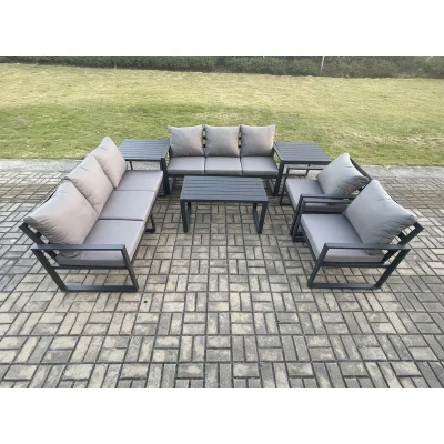 Fimous Aluminium 7 Pieces Garden Furniture Set with Cushions 8 Seater Outdoor Patio Lounge Sofa 2 Armchairs Side Tables Dark Grey