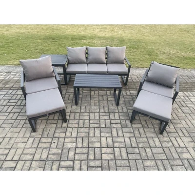 Fimous Aluminium 7 Pieces Garden Furniture Sofa Set with Cushions Seater Outdoor Patio 2 Armchair Big Footstools Side Table Dark Grey