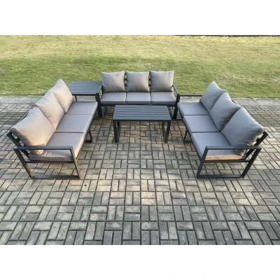 Fimous Aluminium 9 Seater Outdoor Garden Furniture Set Lounge Sofa Oblong Coffee Table Side Sets with Cushions Dark Grey