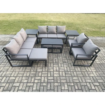 Fimous Aluminium Outdoor Garden Furniture Lounge Sofa 2 PC Chairs Oblong Coffee Table Sets with Side Tables 3 Footstools Dark Grey