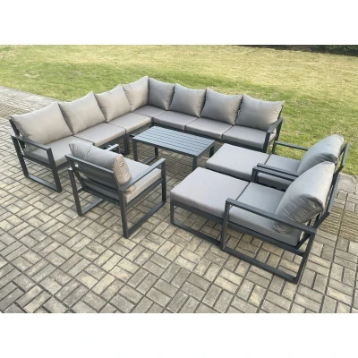 Fimous Aluminium Outdoor Garden Furniture Set Lounge Corner Sofa 3 Pcs Chair Oblong Coffee Table Sets with 2 Big Footstools Dark Grey