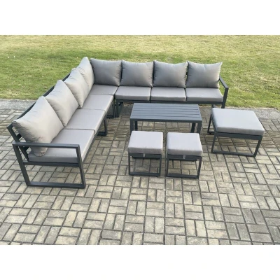 Fimous Aluminium Outdoor Garden Furniture Set Lounge Corner Sofa Oblong Coffee Table Sets with 3 Footstools Dark Grey