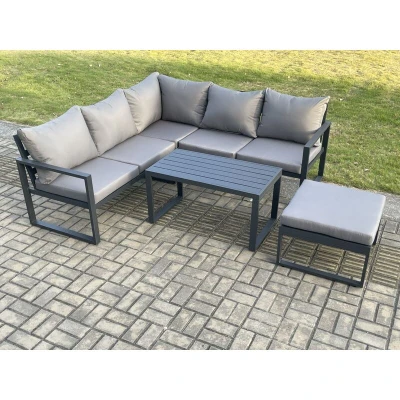 Fimous Aluminium Outdoor Garden Furniture Set Lounge Sofa Oblong Coffee Table Sets with Big Footstool Indoor Conservatory Dark Grey