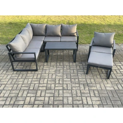 Fimous Aluminium Outdoor Garden Furniture Set Lounge Sofa Oblong Coffee Table Sets with Chair Big Footstool Indoor Conservatory Dark Grey