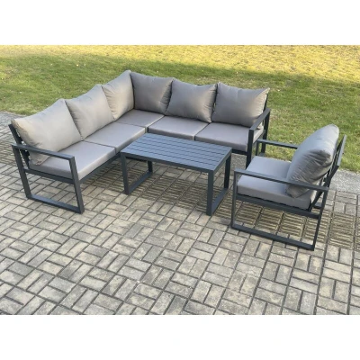 Fimous Aluminium Outdoor Garden Furniture Set Lounge Sofa Oblong Coffee Table Sets with Chair Indoor Conservatory Dark Grey