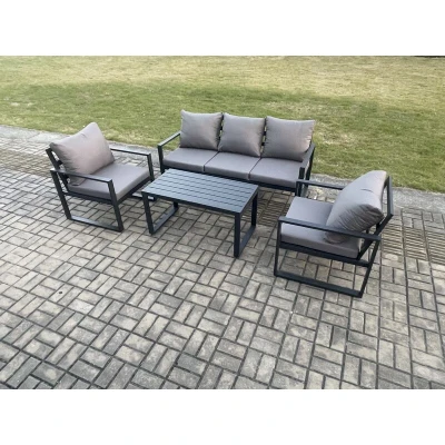 Fimous Aluminium Outdoor Garden Furniture Set Patio Lounge Sofa with Oblong Coffee Table 2 Armchairs Dark Grey