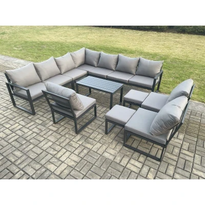 Fimous Aluminium Outdoor Garden Furniture Set Patio Lounge Sofa with Oblong Coffee Table 2 Small Footstools Dark Grey