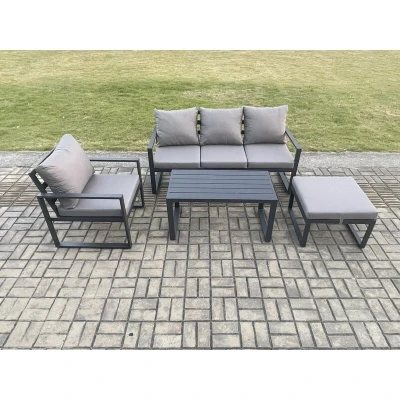 Fimous Aluminium Outdoor Garden Furniture Set Patio Lounge Sofa with Oblong Coffee Table Big Footstool Armchair Dark Grey