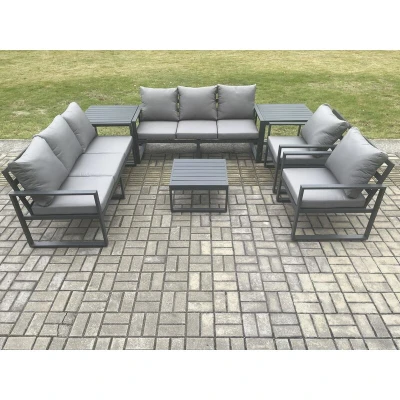 Fimous Aluminium Outdoor Lounge Sofa Set Garden Furniture Sets with Square Coffee Table 2 Chairs Side Tables Dark Grey 8 Seater