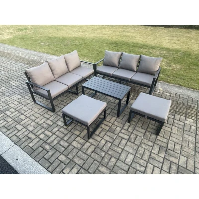 Fimous Aluminium Patio Outdoor Garden Furniture Lounge Sofa Set with Oblong Coffee Table 2 Big Footstools Dark Grey