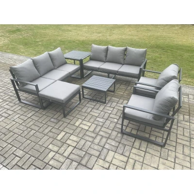 Fimous Aluminium Patio Outdoor Garden Furniture Lounge Sofa Set with Square Coffee Table 2 Chairs Big Footstool Side Dark Grey