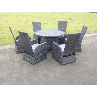 Fimous Dark Grey Mixed Outdoor Wicker Rattan Garden Furniture Reclining Chair And Table Dining Sets 6 Seater Round