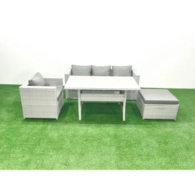 Fimous Garden Dining Set Outdoor Rattan Furniture with Sofa Table Big Footstool Light Grey Mixed