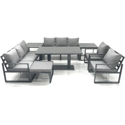 Fimous Garden Sofa Set Aluminium Furniture Rising Dining Tabe with 2 Chair Big Footstools Side Tables Dark Grey