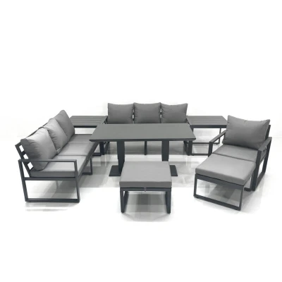Fimous Outdoor Garden Furniture Set Aluminium Lounge Sofa Adjustable Rising Lifting Dining Table Sets with 2 Big Footstools Side Tables Dark Grey