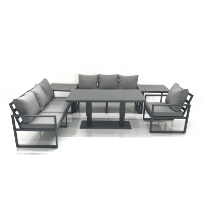 Fimous Outdoor Garden Furniture Set Aluminium Lounge Sofa Adjustable Rising Lifting Dining Table Sets with 2 Side Tables Dark Grey
