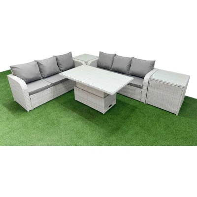Fimous Outdoor Garden Furniture Sets 6 Seater Wicker Rattan Sofa with Adjustable Lifting Dining or Coffee Table high Back Lounge