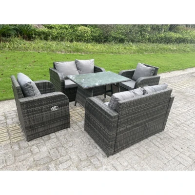Fimous Outdoor Rattan Garden Furniture Sofa Set Dining Table Reclining Chairs Love 6 Seater