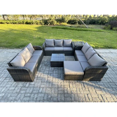 Fimous Patio Garden Furniture Sets Wicker 10 Seater Outdoor Rattan Sofa with Square Coffee Table Big Footstool Side