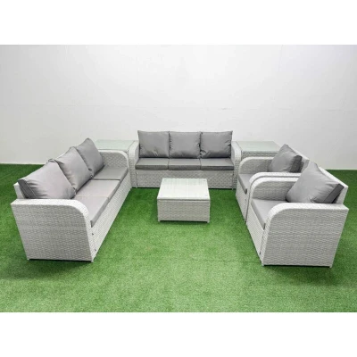 Fimous PE Rattan High Back Lounge Sofa Set Patio Square Coffee Table & Chairs with 3 Seater Reclining Chair 2 Side Light Grey
