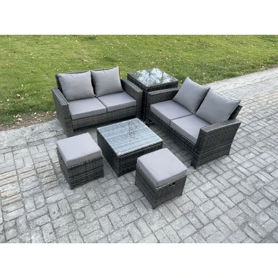 Fimous Rattan Garden Furniture Set 6 piece Patio Sofa Weaving Wicker includes 2 Double Seat Sofa, Coffee Table, Small Footstools