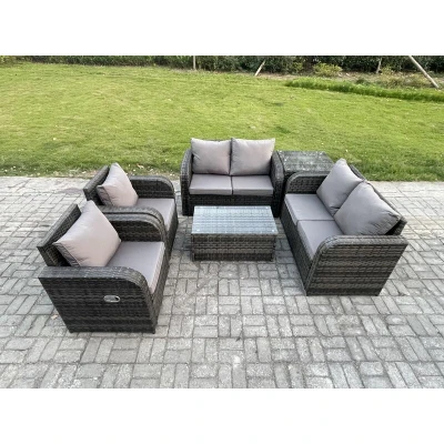 Fimous Rattan Garden Furniture Set 6 Seater Patio Outdoor Lounge Sofa with 2 Reclining Chairs Rectangular Coffee Table Side Dark Grey Mixed