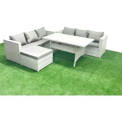 Fimous Rattan Garden Furniture Set 7 Seater Outdoor Sofa with Dining Table Big Footstool Light Grey Mixed