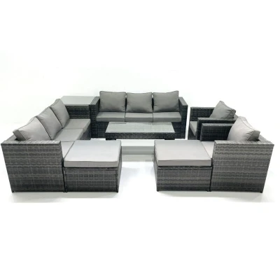 Fimous Rattan Garden Furniture Sofa Set with Coffee Table Armchair Side 2 Big Footstools Dark Grey Mixed
